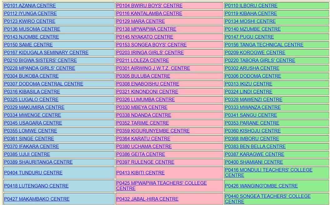 - Chagua aina ya mtihani husika (PSLE, FTNA, CSEE, ACSEE n.k.)